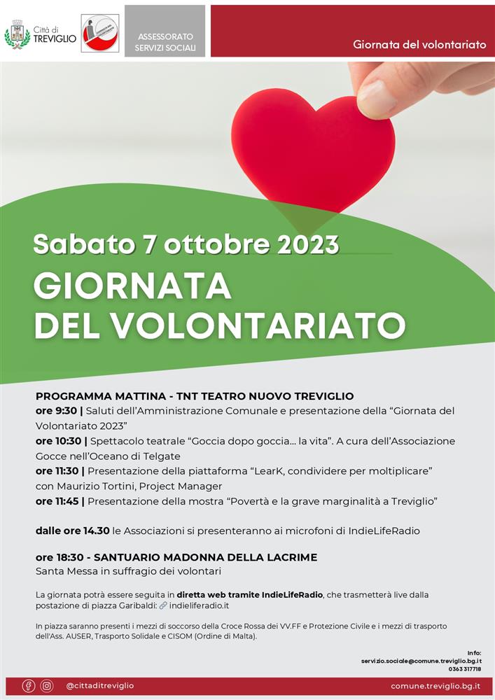 Sabato 7 ottobre 2023 si è tenuta presso il teatro TNT di Treviglio la Giornata del volontariato.