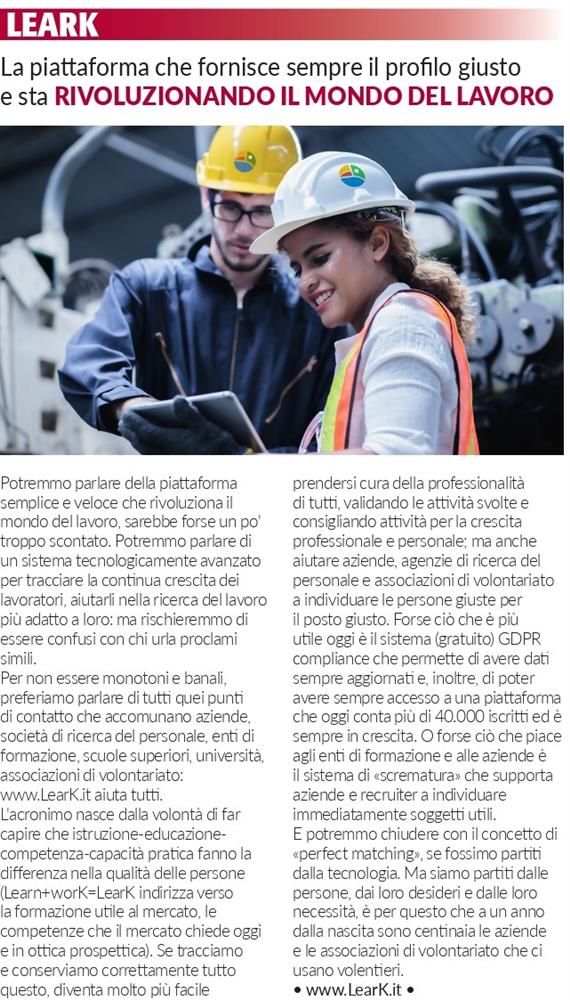 Il 19 maggio 2021 il Corriere della Sera sezione di Milano ha scritto un articolo incentrato su LearK, definendoci come “La piattaforma che fornisce sempre il profilo giusto e sta RIVOLUZIONANDO IL MONDO DEL LAVORO”.